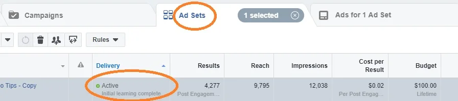- Facebook mentioned that the benchmark is 50 results BUT in my opinion and experience, you don't really need 50 results to determine if your campaign is good.