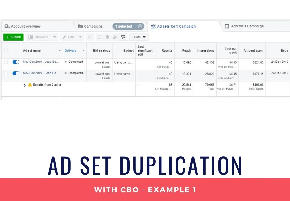 You will get more advantage when you couple this Ad Set Duplication technique with Campaign Budget Optimization (CBO).